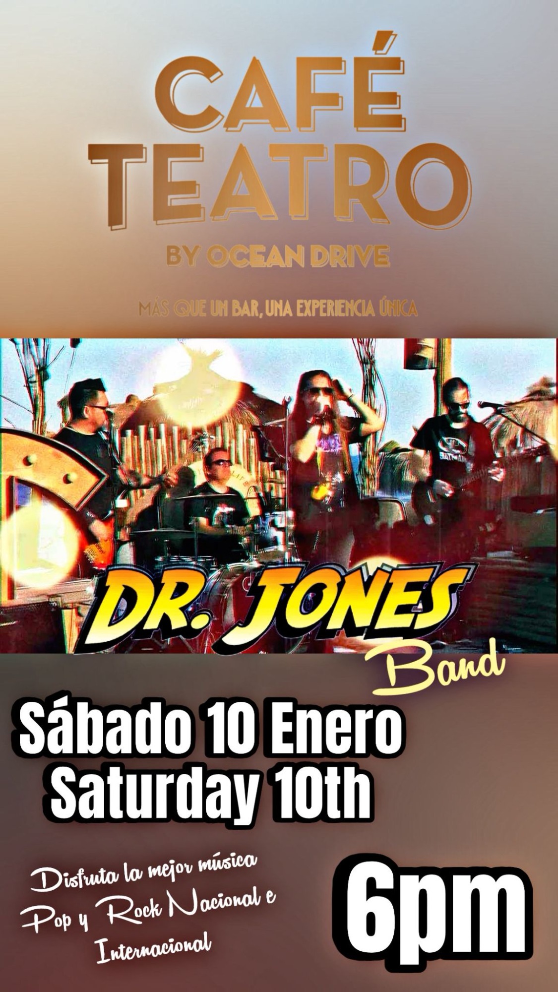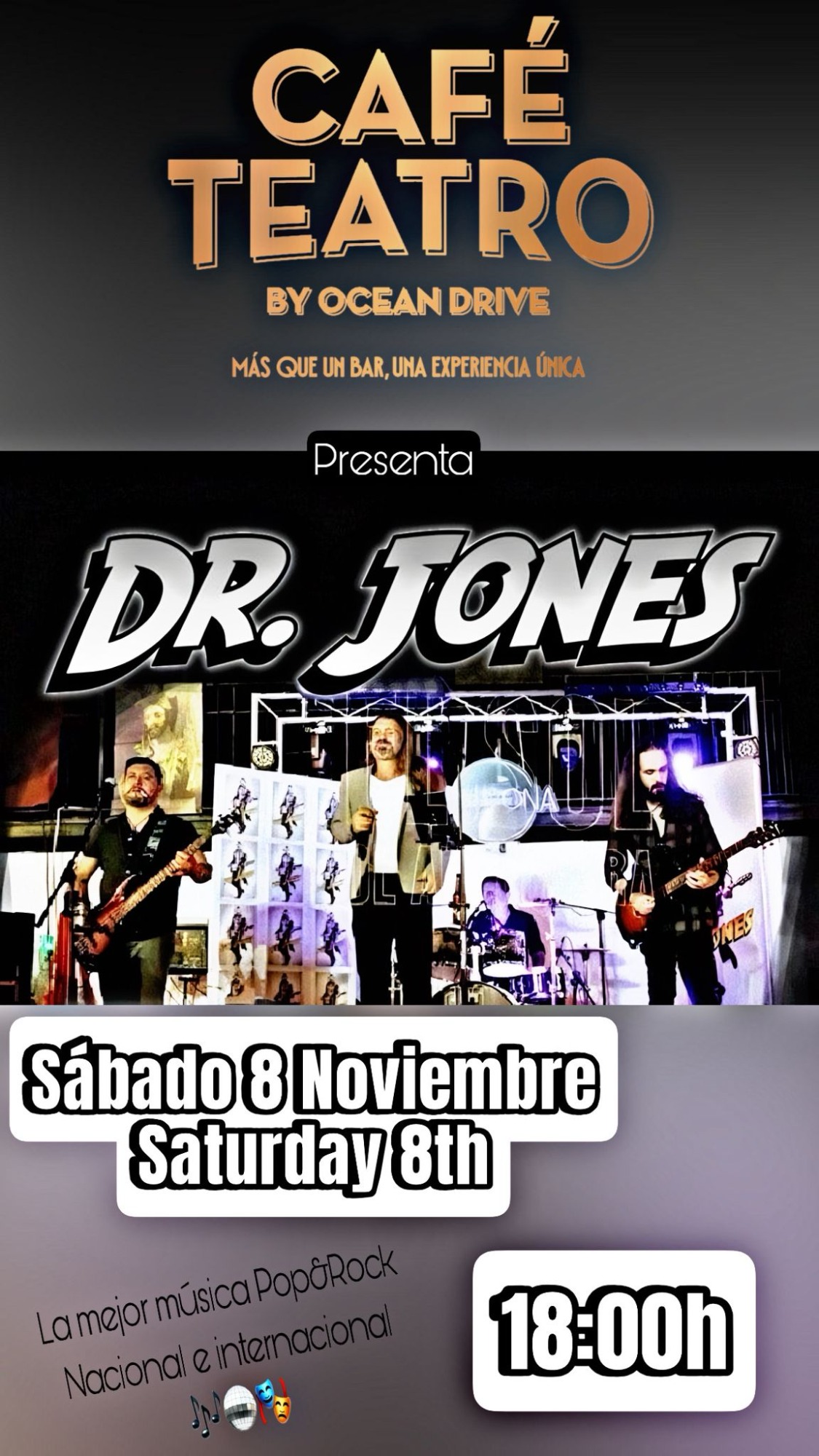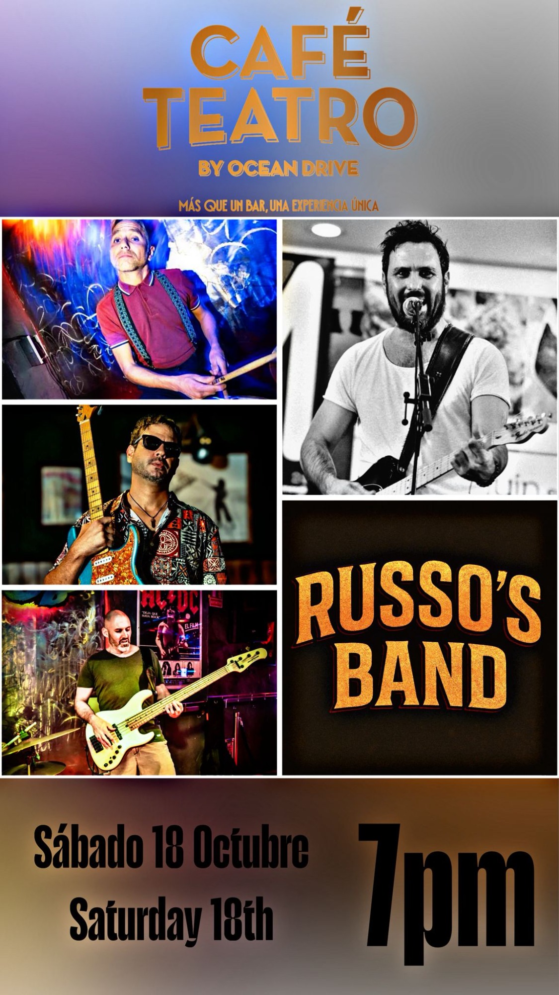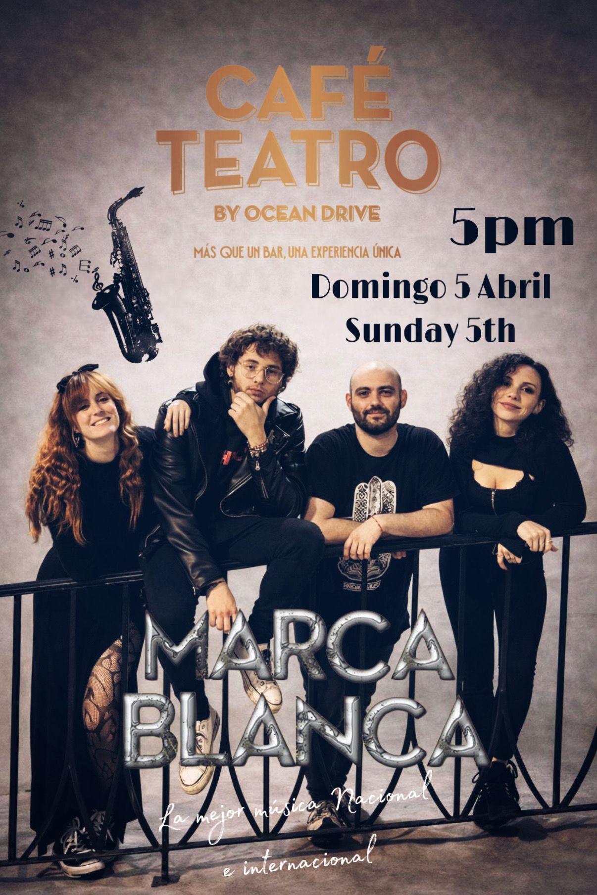 Fantástica banda malagueña con versiones de la mejor música internacional para una gran tarde noche de domingo.