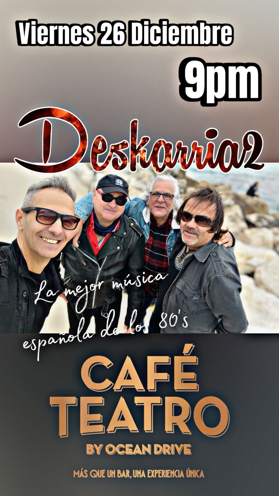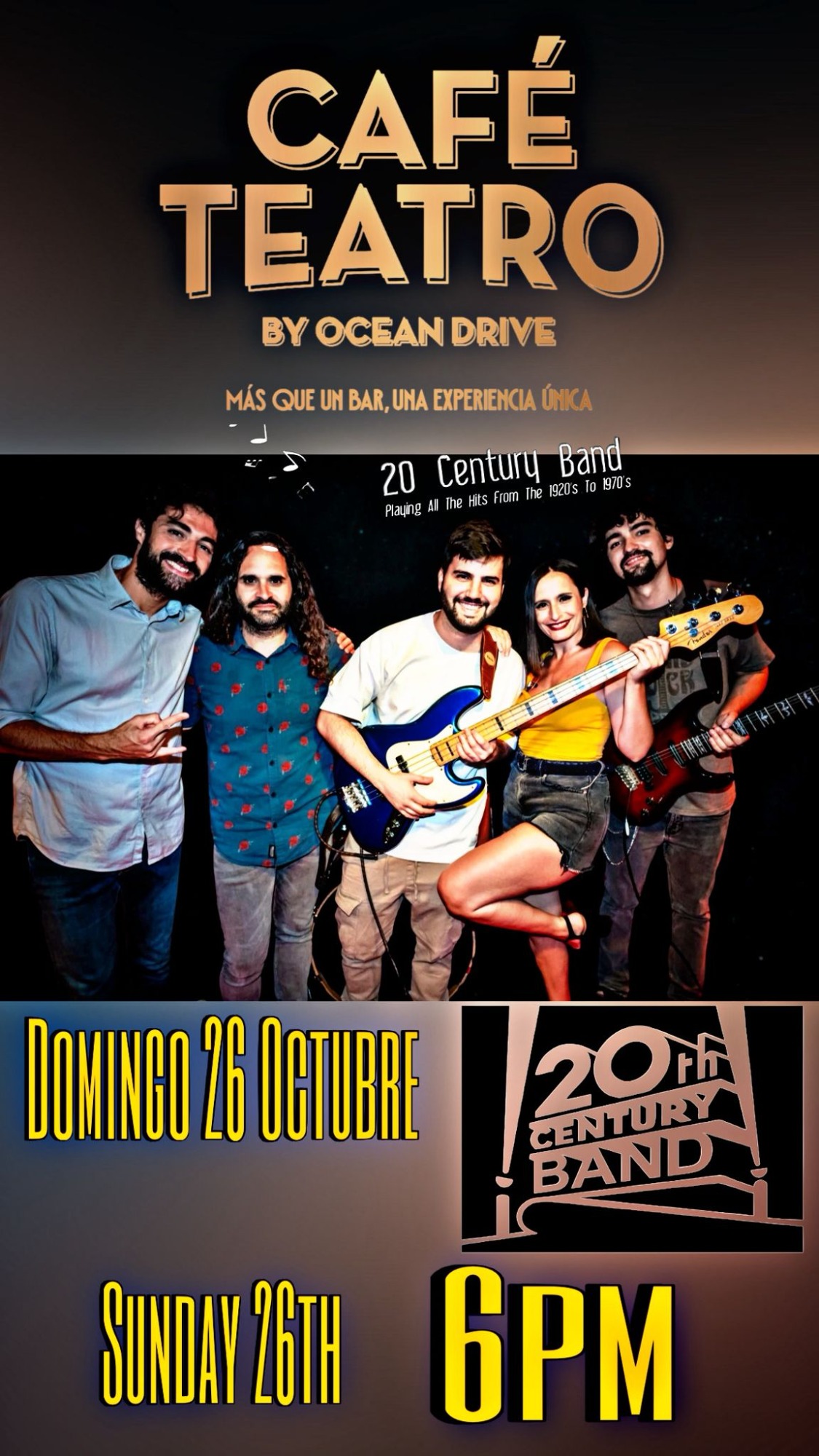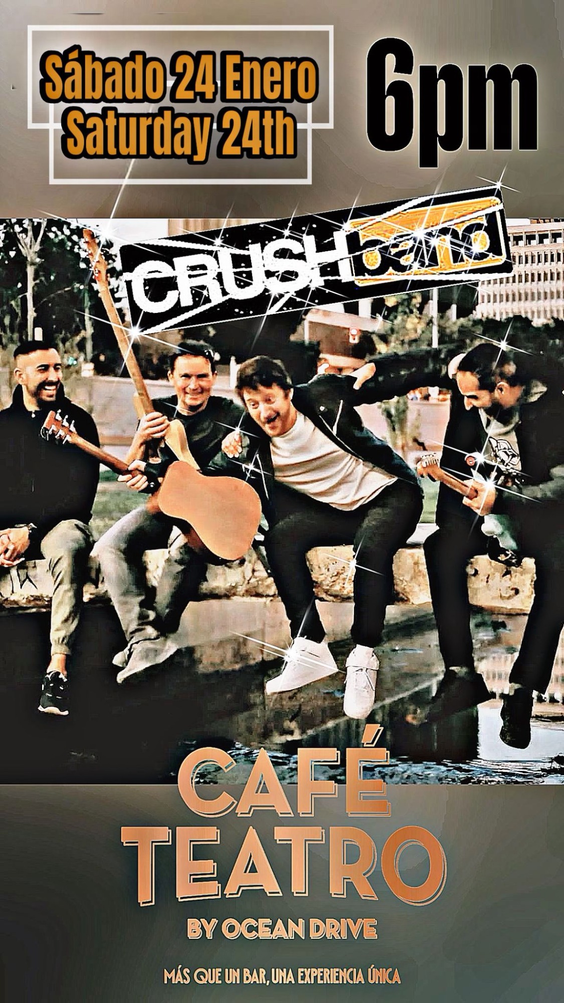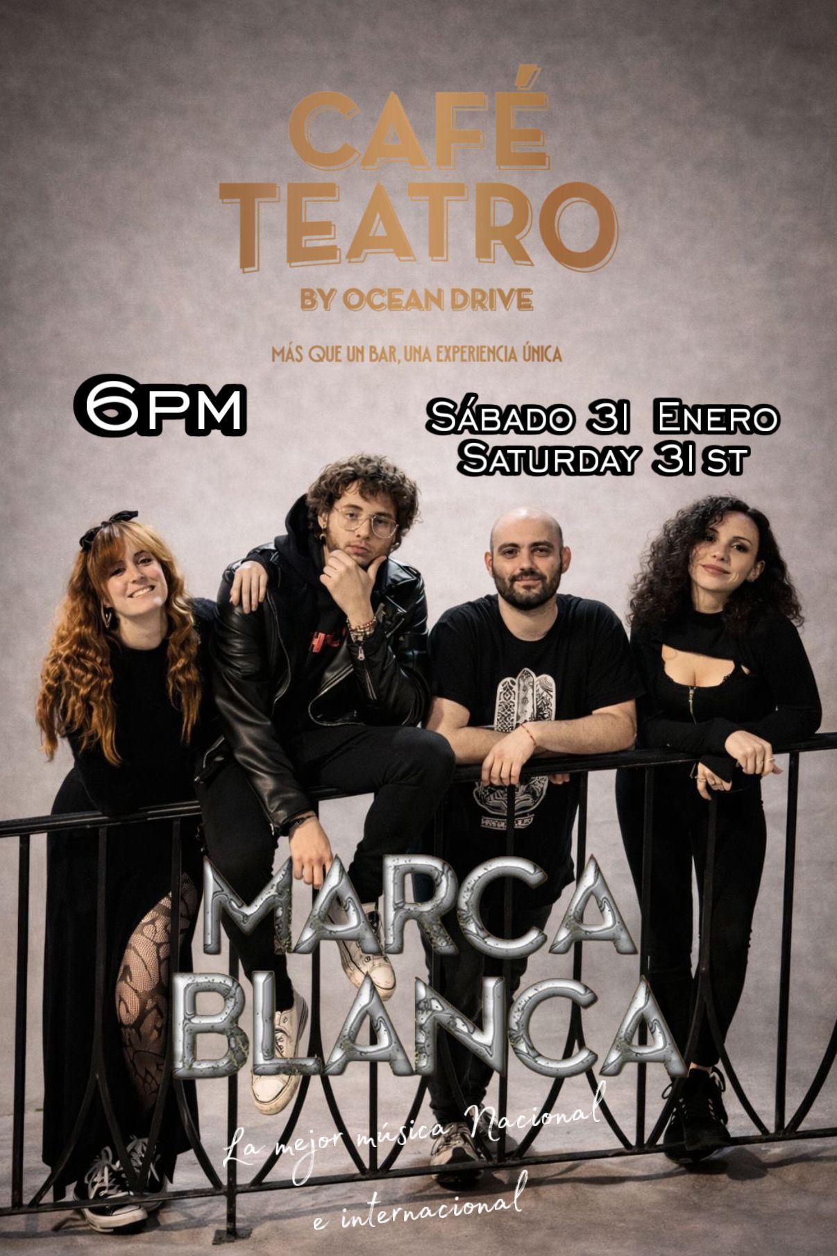 Fantástica banda malagueña con versiones de la mejor música internacional para una gran tarde noche de domingo.