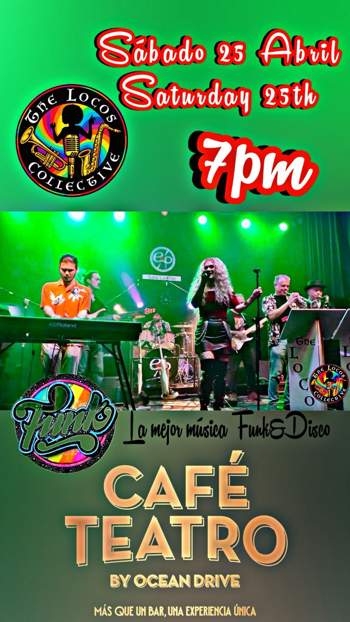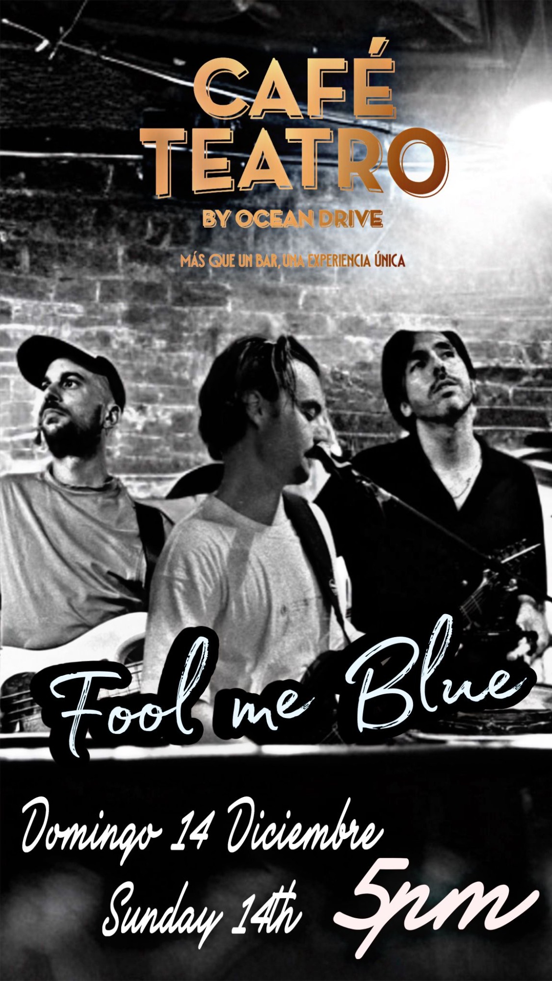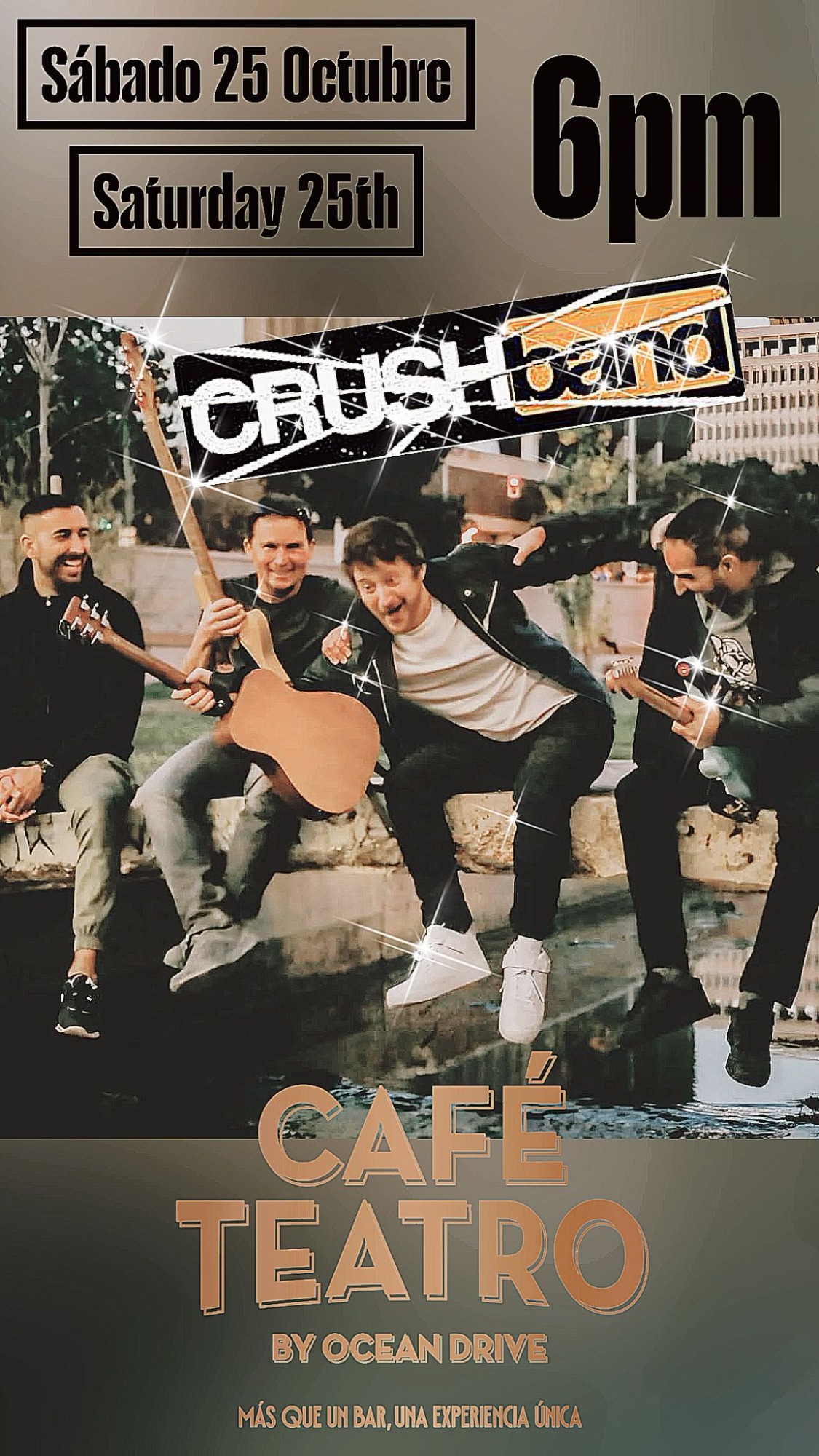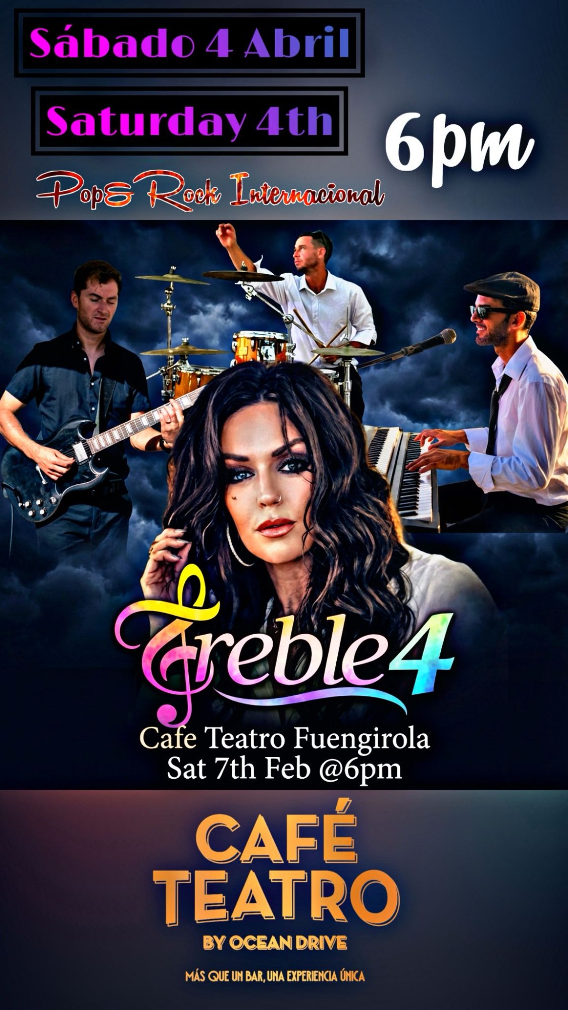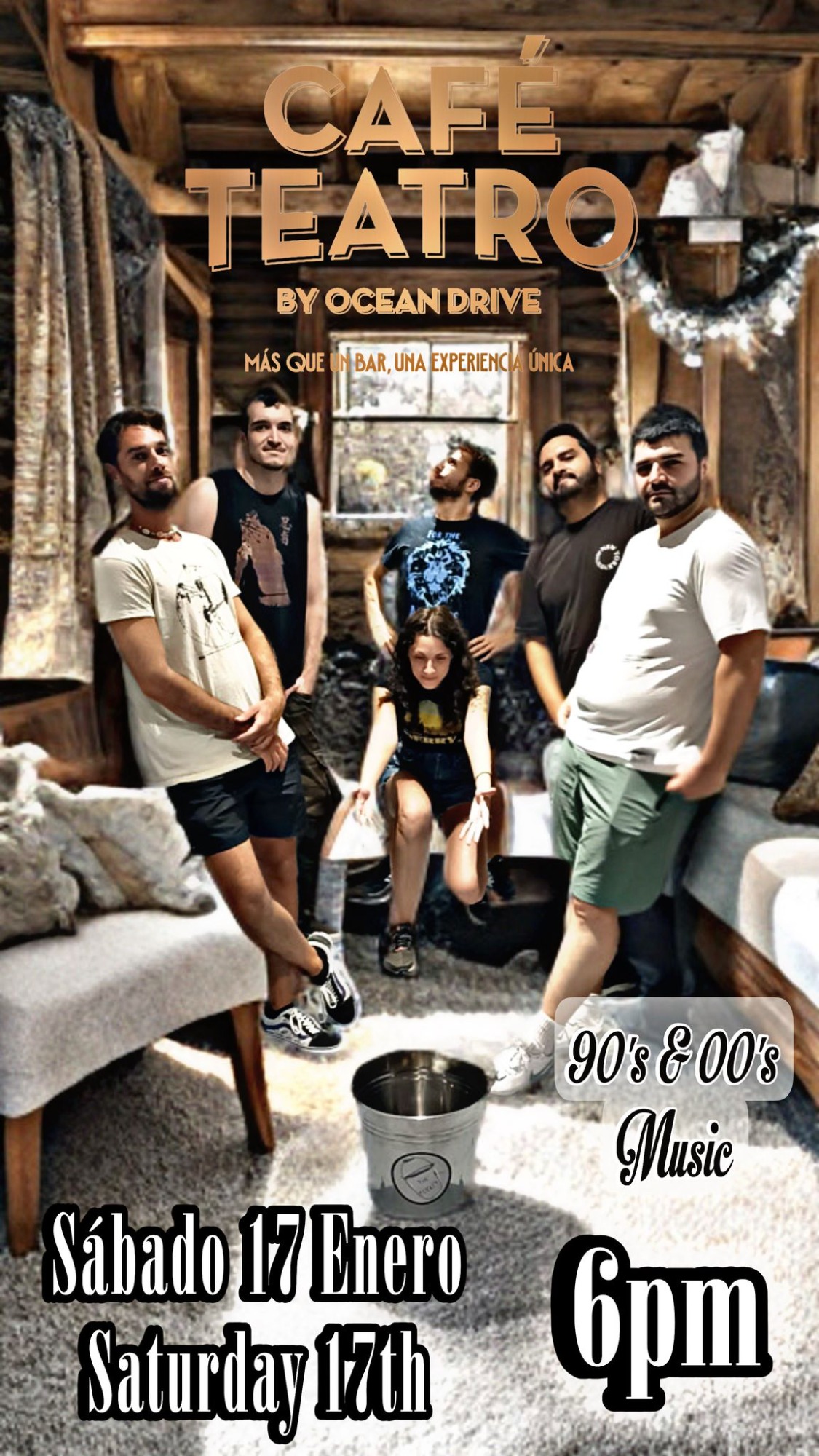 Fantástica banda malagueña con versiones de la mejor música internacional para una gran tarde noche de domingo.
