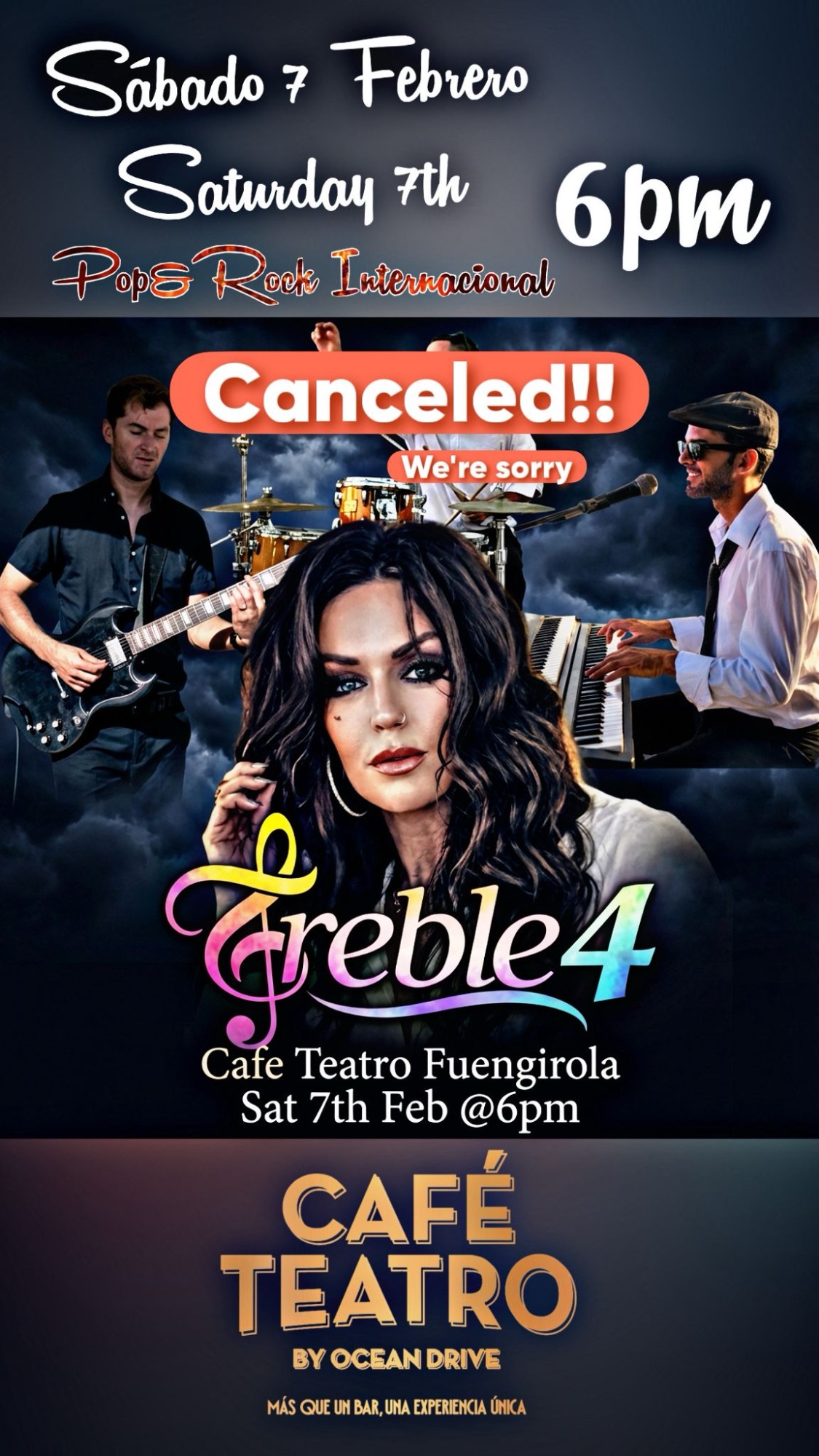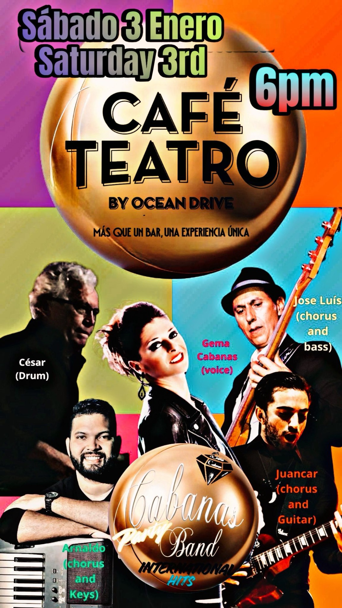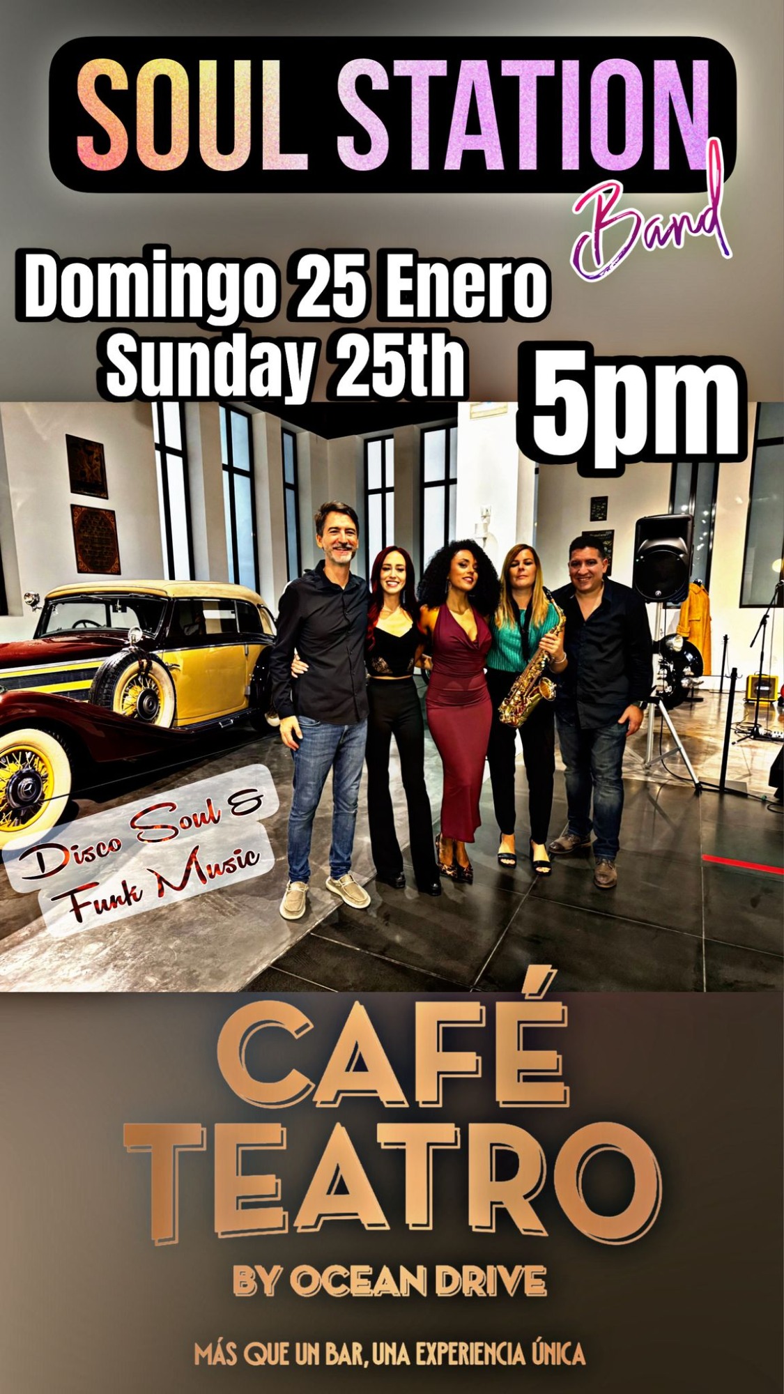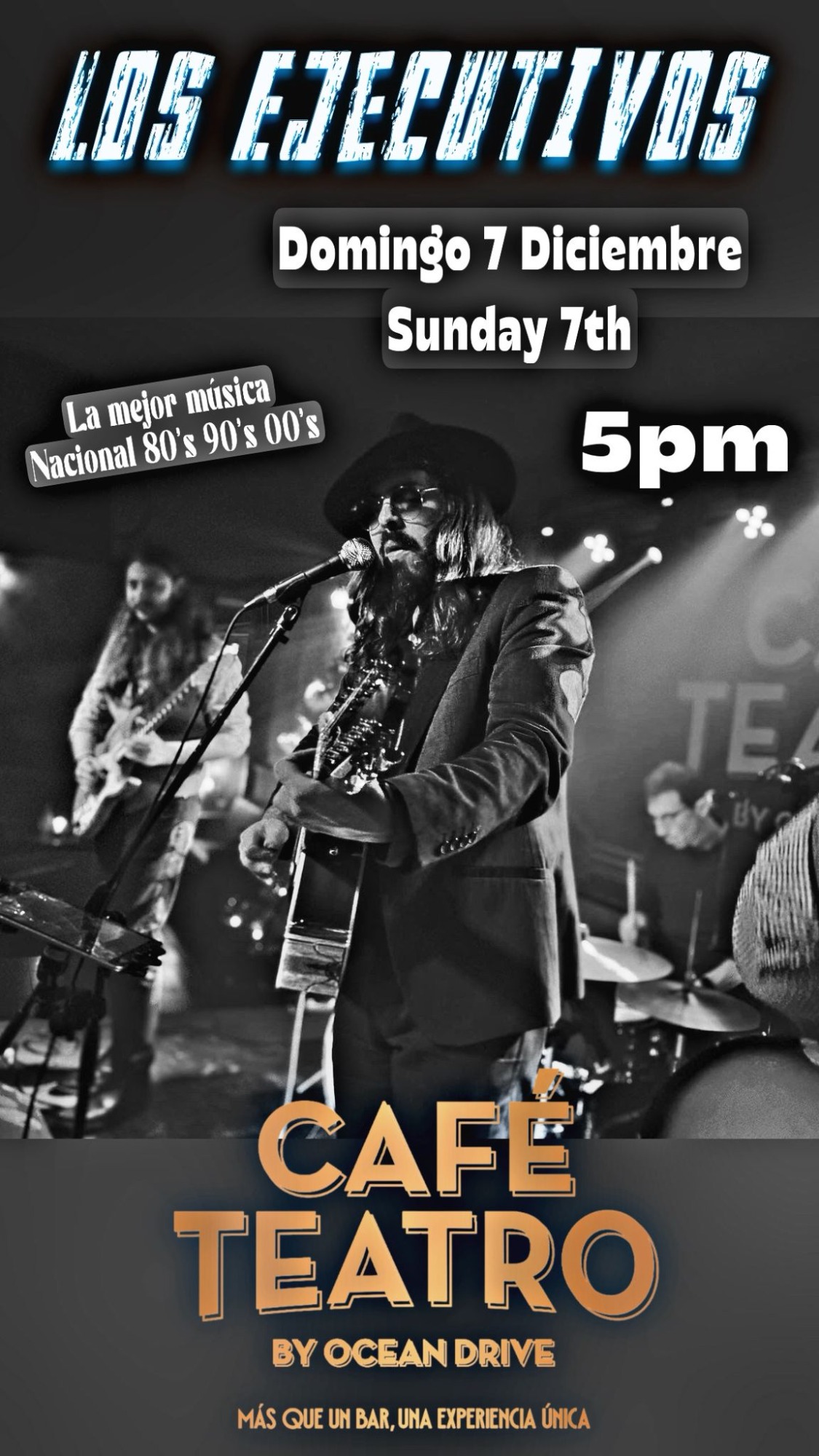 Fantástica banda malagueña con versiones de la mejor música internacional para una gran tarde noche de domingo.