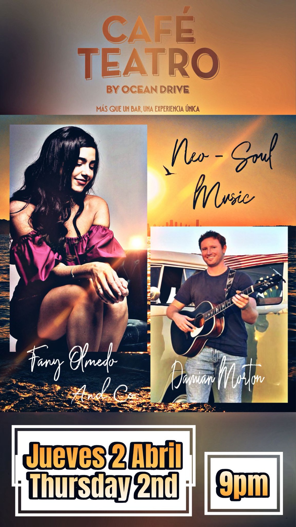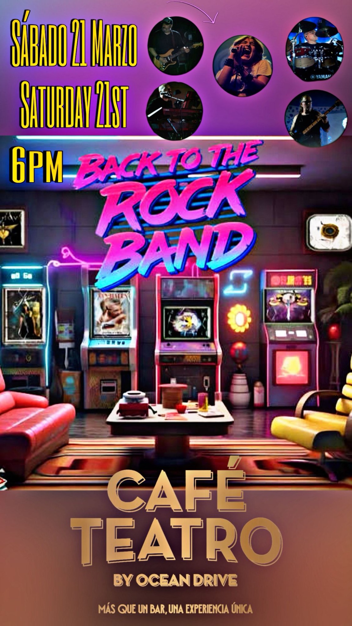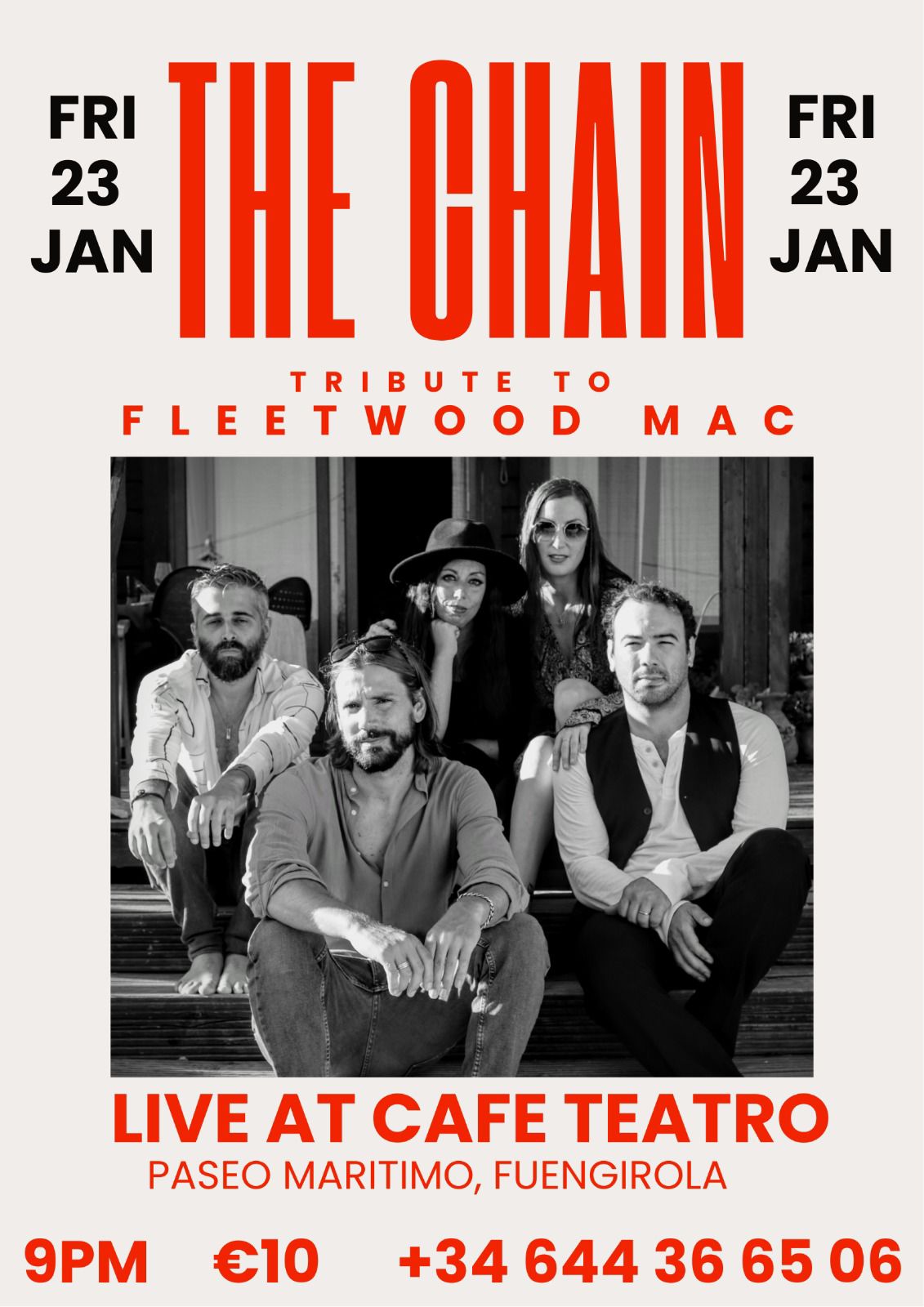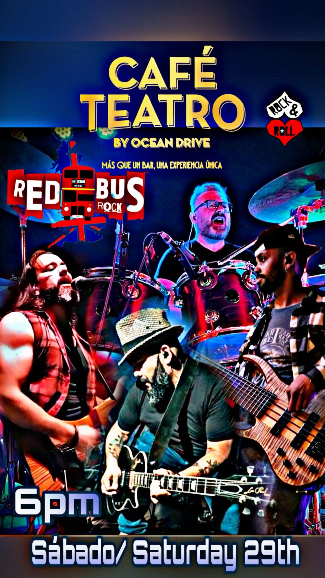 Fantástica banda malagueña con versiones de la mejor música internacional para una gran tarde noche de domingo.