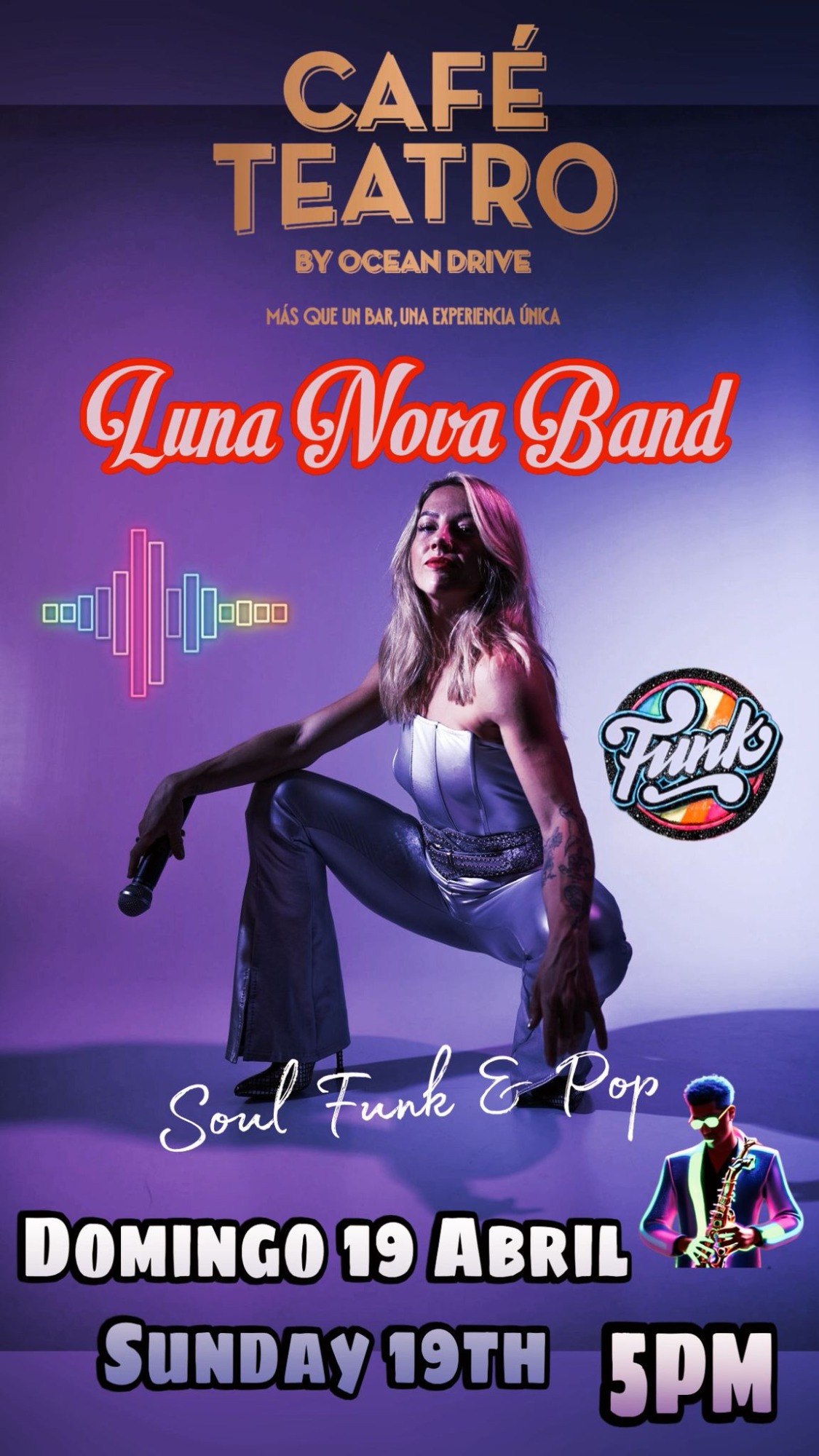 La banda liderada por nuestra querida Sara Ramírez viene a cerrar este fantástico mes de abril lleno de risas, magia, bailes, buen ambiente, grandes artistas y mucha buena música.